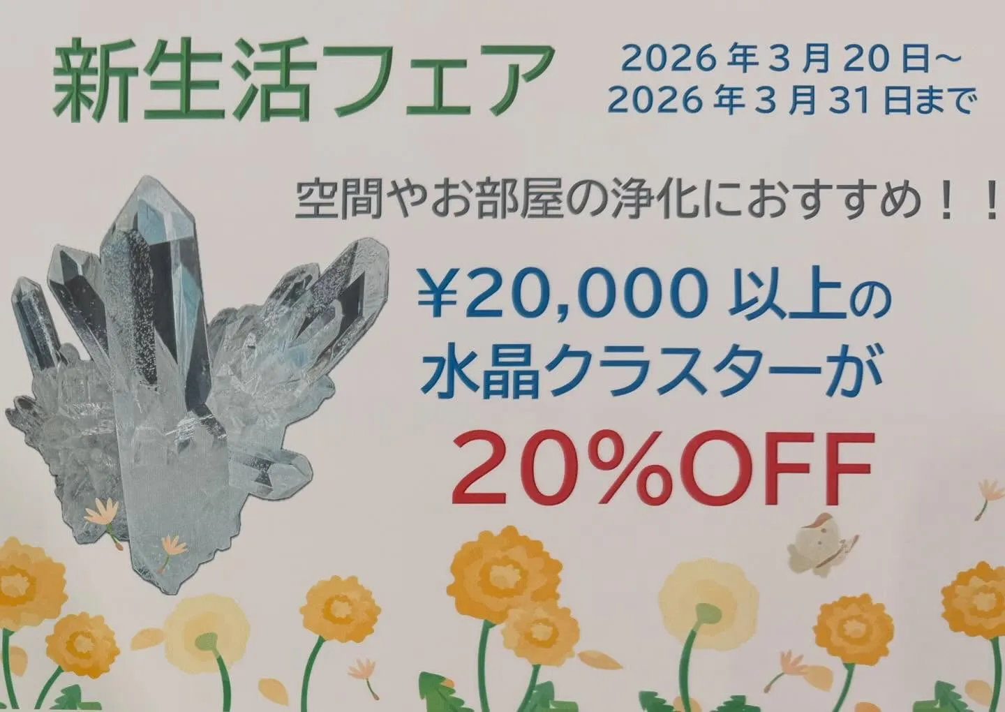 ¥20,000以上の水晶クラスターが20%OFFとなります✨